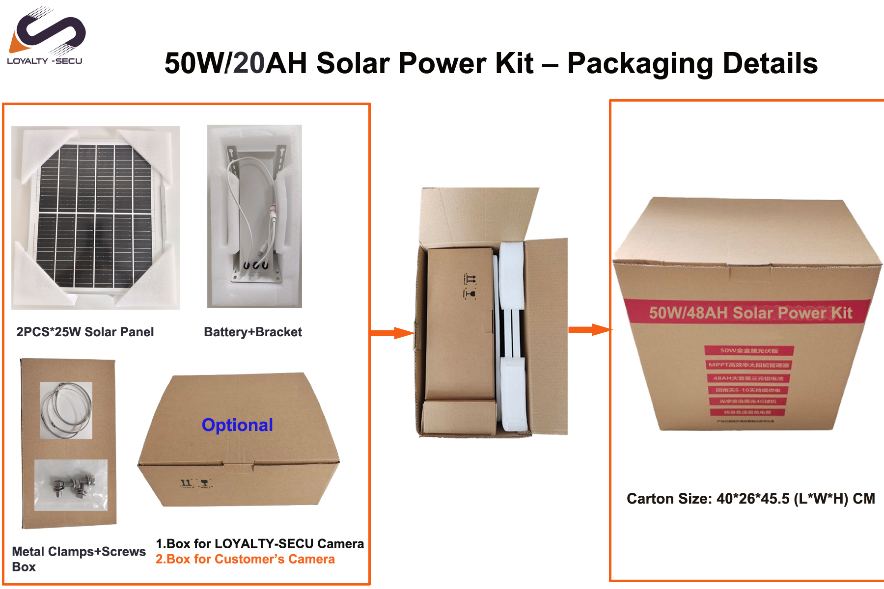 50W/20AH Solar Power Kit Packaging Details