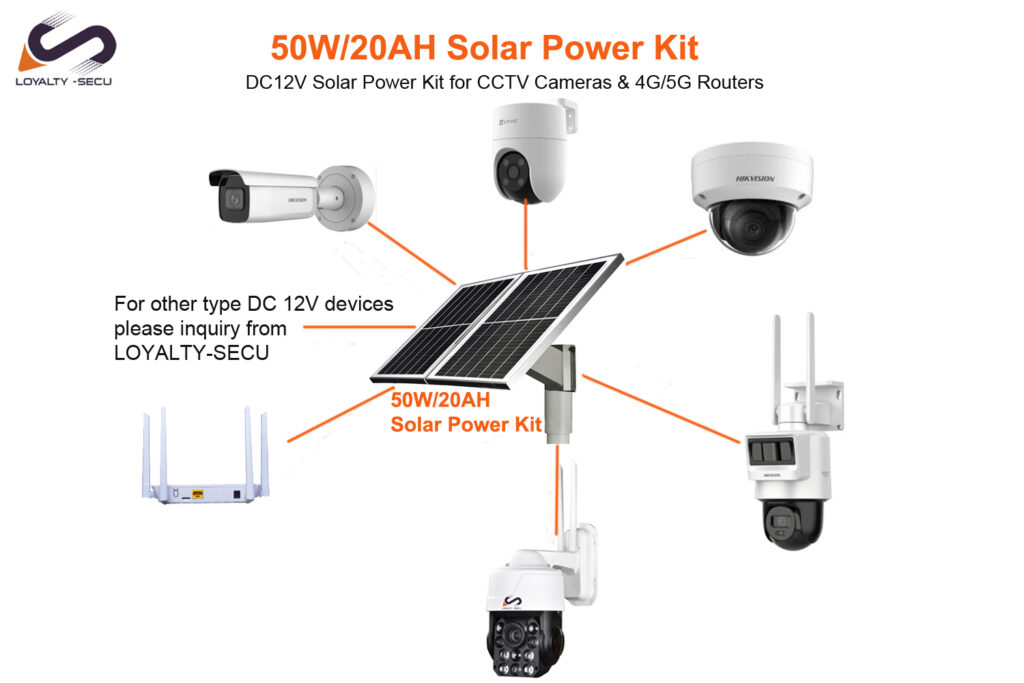 A DC12V universal solar power kit designed to support mainstream CCTV cameras and 4G/5G routers — stable, flexible, and easy to deploy.
